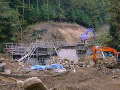 | 2000年10月15日(日) 幻の斉木林道を求めて 先週行った笠取小屋への道は「斉木林道」というらしい。 「山と高原地図」で見ると柳沢峠の手前の林道だ。ここは何度も行ったことがあるが、名前は 知らなかった。 終点の板橋峠の脇から登山道らしき道があるのはわかっていたが、まさか車が通れるとは思 えない。 きっと、他に入れる道があるに違いない。探しに行ってみた。 AM7:00 自宅を出発。もっと早く起きるつもりだったが、連日のハードワークで爆睡してしまっ た。 奥多摩周遊道路はまだゲートが開かないので、上野原〜小菅経由で行く。 途中、林道棚沢今川線でウォーミングアップ。やや荒れ気味のショートコース。 ![]() 途中工事中の分岐があった。 ![]() AM10:00 板橋峠に到着。ここまではなだらかなダート。 いつもながら人気がなく不気味な場所だ。さて、斉木林道は? ![]() 稜線に沿って、車が通れる道があるが、倒木と大岩でふさいである。 が、脇の踏み跡から入ってみる。登りきったところからは道が細くなり、登山道と化す。 なおも林道だからと進んでみるが小さな崩落があってバイクでも無理。 やはりここは徒歩かMTBでなければ無理なようだ。 ![]() 仕方がないので、大ダル林道へと向かう。春は山菜取りだが、この時期はきのこ狩りの人がた くさん入っている。 峠の広場から先、崩れていて通行止めとの情報だったが、バイクなら平気で通れる。(下を見 るとコワイケド) 終点は特に工事が進んだ様子もなく変わりなし。広場の脇の道もバイクで入れそうだがすぐ細 くなっている。 ![]() 次に一之瀬の集落から高橋へ入ってみる。 最後の民家が切れた先から、左沿いに行って見るが、いずれも登山道クラスになってしまう。 これではアタックモードだ。3本目は普通の林道だが、ゲートに阻まれてしまった。 水源管理道路になっているので、これが斉木林道につながっているのだろう。いつの日かリベ ンジだ。 ![]() ここまで来たのだからと、大ダル林道の一之瀬側の様子を見に行く。 大掛かりに工事をしているが、開通はまだ先だろう。 ![]() 次に、泉水中段線へ。横手峠でお昼にした。眺めは良いのだが雲行きが怪しい。急いで泉水 谷林道へ行く。 切り立った岩もすごいけど、こういう落ち着いたところもお気に入り。 標高があまり高くないせいか、紅葉は今一つ。 ![]() 終点の広場は削られ、丸木橋も跡形もない。 泉水中段線側の開削は終わり、新しい橋を架ければ、来年は完抜林道としてお目見えするの だろうか? のどかな広場の風景が懐かしい。 ![]() 雨が降り出してきた。今日は工事中ばかりだったな。 おうちへ帰ろう。 |
