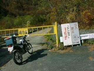 2000年11月11日(日) 奈良子林道とその周辺 前日の土曜日は八王子市内でも北風が強く、街中を枯葉が舞っていた。今日は風はほ とんどないが天気予報は午前中所により一時雨と言っている。そろそろバイクにはつら い季節になったか・・・。 朝5時半に目がさめた。外はまだ暗い。のんびり身支度をしているといつのまにか明 るくなっている。やや曇っているが悪い天気ではない。6時半自宅を出発。今日は以前 から行ってみたかった奈良子林道に行くつもりだ。6月初旬に行ってみたが、ゲートが 閉まっており通行できなかった。先日、工事も終わり通行できると聞いた。冬季は通行 止めになるので、行くなら今しかない。 で行くつもりだ。陣馬街道の関場で左に折れずに直進。右手に盆掘林道入口、通りすぎ る。集落を抜け、二つ沢林道との分岐に出る。ここで工事中通行止めだ。8月31日〜 1月16日まで。はて、今まで通らなかったのだろうか?仕方なく陣馬街道へ戻る。 陣馬高原下のバス停にバスが止まっている。しばらく行くと何組かのハイカーに追い つく。朝早いので多くはないが、できれば避けたいところだ。今日は仕方ない。和田峠 を越え、藤野〜上野原に入る。レイク相模CCを過ぎたあたりから日が差してきた。鶴峠 を越える頃には、今日は降らないなと予感した。小菅に入りR139を左折、松姫峠 へ。峠を越えると南斜面だ。日が差して暖かい。小金沢の山々が紅葉している。 ![]() 良く見えないが正面の山の山腹に道路が見える。 ある。入ってみると程なくトンネルだ。トンネル中ほどにバリケードがある。トンネル の向こうには舗装された道が続いている。トンネル内に左へ分岐があるので進んでみ る。ダムだ。バスが止まっている。ダムの反対側にトイレがある。ここで休憩にしよ う。20名ほどの団体が何やら説明を聞いている。東京電力のダム見学会のようだ。運 良く入れてしまったようだ。 ダムから見ると、さっきのバリケードの先の道がダム沿いに伸びているのが見える。 たとえ舗装されていても、いつか一般に開放されることがあるのだろうか。 ![]() 再びR139に戻る。左手に先ほどの葛野川ダムへ続くダートがあるがチェーンがか かっている。小金沢橋を渡ると左手に真木小金沢林道。いつも工事車両が通行している イメージがあって入ったことがなかった。きょうは静かだ。行ってみよう。 小金沢沿いの舗装路は緩やかに高度を上げていく。途中発電施設らしき工事現場を 過ぎると、傾斜がきつくなりぐんぐんと登っていく。景色が開けてくる。いい眺めだ。 登りきると大規模な工事現場がある。右手、小金沢山方向に道が続いているのが見える が、厳重なゲートがあり入れない。 またしばらく登っていくと大峠だ。雁ヶ腹摺山へ登っているのだろう、峠には車がた くさん止まっている。数年前に仲間と大月からタクシーでここまで来たことがある。そ のときは大峠で通行止めで遠くで工事しているのが見えた。 雁ヶ腹摺山は500円札の富士山のモデルとして有名である。1時間ほど登ると山 頂付近まで行くことができる。人気のコースだ。 途中で引き返すつもりだったが、ここまできてしまった。奈良子林道にはこっちから 行くことにしよう。 ここからは下り。途中右手にダートの林道が見えるが通行止だ。焼山沢真木林道 だ。湯ノ沢峠方向につなげるようだが工事は進んでいるのだろうか。 ![]() しばらく下ると左手に鋭角に曲がる道がある。ここが奈良子林道の入口だ。ダートと 舗装が交互に現れる道を登っていく。ダートは結構荒れているところがある。泥濘につ いた轍や流水による溝が大きく口をあけている。何ヶ所か眺めのいい場所があるが、今 日は富士山はかすんでしまって見えない。 ![]() ここは路面状態のいいところ。野営できるスペースもある。 高原風の走りやすいところを過ぎると下りだ。奈良子川に向かって石ころの多い道を 下っていく。右手に分岐があり入ってみるが草ぼうぼうの急斜面。砂防ダムの工事用の ようだ。すぐ崩れて通れなくなり、引き返す。 川に沿って下っていくと右手に船窪林道の分岐があり入ってみる。金山峠への指導 標もあり登山ルートにもなっているようだ。路面は砂混じりの土で良くグリップする。 急な登りを気持ち良くグイグイ登っていく。分岐があるがどちらも砂防ダムで行き止ま りだ。左の砂防ダムは脇に細いつづら折れがあり登っていくと赤い軽自動車が止まって いた。よくここまで登れたものだ。ゴルフグラブを並べて素振りしている。 声をかけると、「きのこ狩りですか?この奥はこんな大きな岩魚がいるんです よ。」とゴルフグラブ片手ににこやかに返事が返ってきた。ジモティーにはかなわな い。引き返す途中の道はかなり掘れていた。 ![]() この後はR139まで長い長い下りである。いくら景色が良くても飽きてしまう。や はり反対側から登った方が楽しめるようである。 その後R139を右手に折れて、小和田〜日影〜奥山林道