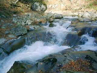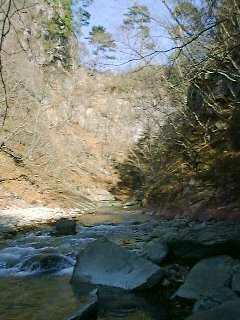 | 11月26日:日曜日 (群馬県四万温泉へ) 今日もいい天気だ。今日はバイクで日帰りロングツーリング。 八王子の自宅から青梅〜名栗〜秩父〜皆野〜藤岡〜高崎と順調に進む。紅葉と走りを 楽しむベストコースだと思っている。高崎から榛名町を経て榛名山の南西麓をぐるっと 回るのだが、どうも高崎で迷ってしまう。榛名山からは気持ちよくゆったりと走れるお 気に入りのR406だ。5時間ほどで四万に到着。 今日のお目当ては湯の泉ではなく、その奥、新潟県境方面につながっていると思われ る道だ。四万ダムのいつもの場所にバイクを止め、山歩きの身支度をしていると、1台 の家族連れの車が通りがかりの人に聞いている。「あの〜。この辺に幻の温泉があるっ て聞いたんですけど〜。」こんなことは人に聞くんじゃなく、自分で探し当てるものだ と思うのは私だけではあるまい。 家族連れは無視してさっさと林道に入る。立派に整備された未舗装路をしばらく歩く と、件の温泉が川沿いにある。温泉は後ではいるとしてこの道がどこまでつながってい るかだ。が、500メートルほど行ったところであえなく終点。もっと続いてると思っ てたのに〜。しかしその先にもおいしそうな道が続いているのだった。 ![]() る。ちょっと着込みすぎたかな、暑いぐらいだ。 道が沢に流されて途切れている。このくらいなら楽勝だ。石伝いに沢を渡ると道はだ んだんと細く荒れてくる。しかし古そうな道だ。路肩は石組みで補強されている。かな り丁寧な仕事と見た。 しばらく進むと、道が崩れさっている。板で渡してあったと思われる部分も落ちてい る。向こうに道がつながっているのが見えるので、いったん川原に降りてまた進む。 ![]() が、川原に降りた踏み跡があるのでいってみる。突き出した大岩をひとつ越えると、日 の当たらない薄暗い川原だ。見上げるとずいぶんと高いところに石組みが見える。あそ こまで登るのは無理だな。 川原でカップラーメンとおにぎりの昼食を食べながら、周 りの景色を見まわす。実はさっきの温泉のさらに奥に、釣師がつくった温泉があると聞 いて確かめに来たのだ。ここまでそれらしい場所はなかった。あるとすれば更にこの 奥。いずれ暖かい時期に渓流歩きに来るとするか。 ![]() 昼食を終え、戻る前にさっきの道をもう一度見上げる。まったく立派なものだ。かっ ては多くの人が行き来していたのだろう。見ているとどうもこの斜面が登れるような気 がしてきた。いや、登れるはずだ、あの石とあの枝を伝って。夢中で登っていくが、今 一歩のところで渡る方法がない。あきらめて下を見るとずいぶん高いところまできてい る。こりゃ降りるのは無理だな。上のほうが斜面の木を利用して登れる。今思うと何か に浮かされていたとしか思えない。一人で道もない山に入っていこうとするなんて。 登りきって反対側を見るとなおいっそう険しい斜面だった。滑り降りても骨の1本や2 本の覚悟はいりそうだ。あきらめて他の道を探す。来た方向はわかるので何とかたどり 着けるだろう。尾根沿いに進むと踏み跡がある。釣師が歩いた跡か。うまく行けば戻れ るかな。しかし踏み跡は枝をくぐり岩を登りとても人が歩いたとは思えない。しまっ た。鹿かサルの獣道だ。ひょっとしたら戻れないかもしれない。そんな恐怖が背中を伝 った。 いてやっと緩やかな谷になっているところに出た。とりあえずここで一休みだ、と思っ たら真下に例の土砂崩れの現場が見える。やったー。やっと戻ってきた。 急ぎ足で来た道を戻ると向こうから人が来る。温泉のことを尋ねていた家族連れだ。 小学生ぐらいの男の子二人とお父さんとお母さん。 「こんにちは」「温泉はありましたか」 「イヤーあれだとみんなで入れないんで」「でもこっちのほうがいいですよ」「この 先どうですか」 「結構崩れているんで子連れはちょっと」 「そうですか」「みんなここでお昼にしようか」 結構お父さんもやるね・・・ 湯の泉で汗を流す。今日は本当にヤバかった。汗といっしょに流れ出たあせりばかり が目に焼き付いている。 帰路は、榛名山を越えて高崎へ抜けた。高崎は渋滞していて、また道に迷ってしまっ た。 ※ 湯の泉は露天の共同湯です。一般には公開されてないので、詳しいことは書けません。 |