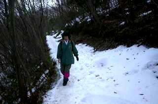 | 2001年2月25日(日) 奥多摩の入り口−高水三山 いまさらながらであるが、「高水三山」である。まだ登ったことがない。どのガイド ブックにも「奥多摩の入門編」のように書かれているが、残念ながら縁がなかった。今 後、この秩父との境にあたるこの山域を歩いてみるつもりなので、まずはここから、と いうわけだ。 ![]() くことにした。ここには簡易トイレもあり、団体さんがミーティングや体操をしてい た。 とてもよい天気だ、境内には梅も咲いていた。 ![]() 坂道を登っていく。所々まだ雪が残っている。 ![]() ![]() 裏手から登るとすぐ高水山である。眺望はあまりない。 ![]() ツルに凍っている。簡易アイゼンをしている人もいた。 ![]() ![]() 高水山から40分ほどで岩茸石山に到着。結構眺めはよい。風をよけて南斜面で昼食 をとっていたら、雪が舞ってきた。 ![]() ![]() だらだらと下ること40分ほどで下の岩場に出る。ここを登ると惣岳山だ。青渭神社 というお社がある。いろいろと彫り物があって面白い(が、ここでデジカメが電池切 れ)。 ![]() 井に到着。ここからが長い。あまりに長くてどれだけ歩いたのか忘れてしまった。やは り素直に電車に乗るべきでした。 |