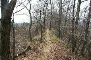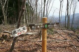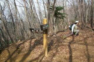 | 2001年3月17日(土) 棒ノ折山〜岩茸石山(常盤林道から) ちらほらと桜の便りが聞こえてくる週末、手軽な山歩きはないものかと思ったら、暮 れに行った常盤林道を思い出した。終点の広場でカーナビでは黒山の近くを指してい た。多分小沢峠から黒山に登るルートの近くに出られるだろう。黒山から棒之折〜岩茸 石間をピストンすれば尾根歩きだけを楽しめる、そう思って出かけることにした。 ![]() 上の画像の地点だ。ここから、作業道らしき道に入る。余り使われていないのか、人が 入らないようにしているのか、草木はもとより、ほったらかしにされた杉の苗木がその まま伸びている。歩きにくい。切り開かれた道が終わると、林を縫って細い道が右から 左上に横切っている。登山道とは思えないが左に登っていき下ったところで登山道らし きところに出る。 ![]() 叉路になっている。さて棒ノ折に行こうか、岩茸石に行こうか。とりあえずゴンジリ峠 までなら遠くないので、棒ノ折に行く。ガーっと下ってガーっと登ればゴンジリ峠だ。 (30分ほど)今日はあまり人がいないようなのでここでお昼にする。この先の雑木林 はお昼寝するのに気持ちよさそうだ。 ![]() し今日はなんて気温が高いのだろう。20度を超しているような気分だ。 ![]() ![]() ![]() ここまでは良かったのだが、ここからが長い。山をいくつも登り、いくつも下り、い つまでたっても岩茸石が近づかない。地図では比較的平坦な道程に思えるのだが、結構 ハードだ。途中眺めの良い場所がいくつもあるのだが、元気が出ない。やっと、岩茸石 の手前、名坂峠に着く。どうやらここから大丹波方面に下りられるようだ。 ![]() うだ。(地図では黒山から1時間30分、もう少しかかった) ![]() が長くなったことに本当に感謝している。 ![]() で、お勧めできない。百軒茶屋〜棒ノ折〜岩茸石〜名坂峠〜大丹波(マス釣り場近く) がベストだろう。ただし夏は藪が深くなるかも。大丹波〜百軒茶屋間はバスまたは徒歩 (頭を使えば自転車でも)で行けば良い。 |