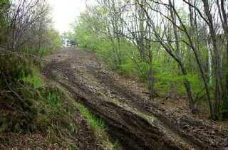 | 2001年5月4日・5日 大菩薩・昇仙峡周辺林道ツーリング はり誰もいなかったようだ。モーニングコーヒーを飲みながら、昨日の残りご飯に雑炊 の素を入れしばらく煮る。山には重く雲がかかっており、どんよりとした朝だ。ぐっす り眠ったので気分はよい。雑炊をすすっていると下から車が上がってきて、テントの張 ってある広場に車をとめた。学者風のおじさんであるが、山菜取りにも見える。軽く挨 拶を交わしたあと山に入っていった。 さて2杯目のコーヒーも終わり、準備は整った。AM8:00。まずは、「大明神林道」を 上ってみる。昨日も薄暗い中、結構広い道だと思っていたがよく整備されている。途中 林道を横切っているキャンプ場につながる道を過ぎしばらく行くと舗装路に出る。左手 は観音峠だが通行止めのウマが置いてある。 ここから引き返し「前山大明神林道」へ向かう。音叉の付け根のような場所から、 右に折れると長い上りのダートが続いている。まるで空に飛び出していくような気分 だ。深田公園に続く道のある駐車スペースを過ぎるとフラットなダートが続く。途中左 手に降りていく分岐が見える。謎の林道群に続く道だろう。さてどこから入ろうか。 ![]() これが天にも昇る気持ち! ている。いくつか分岐があるがそのまま下ってみる。ダートが切れると広い農場の中に 出た。突き当たりは茅ヶ岳広域農道である。謎の林道群はこの2本のダートの間にある わけだ。引き返して最初の分岐から入る。車1台分+αの幅しかないが、なかなか気持 ちのよい道である。しばらく行くと開けた場所に出た。だだっ広い草地が帯状に横切っ ている。ハハ〜、ここがふみ坊さんの書いていた林道六差路だな。すると例のあれ が・・・ありました。ランドセルと人形ですね。誰がこんなところに置いたんでしょう ね。 ![]() これは気持ちいい!ホント! れ上がっているね。今日も暑くなりそうだ。よく見ると下りは紐が張ってあるが、上の ほうは何もなく、車やバイクが走った跡がある。ちょっと行ってみるか、と思ったのが 間違いのもと。最初は草地にまばらに岩が点在している程度。なかなかよい感じ。しば らく行くと赤ん坊の頭ほどの石がごろごろしてくる。ヤバイかなと思ったら大岩に挟ま れたセクションで見事にひっくり返ってしまった。 ![]() ここが例のヒルクライム。最終盤は45度? しばらく謎の林道群で遊んだ後、本線の「前山大明神林道」に戻る。ハイキングの家 族連れに「千本桜」はこっちでしょうか?とたずねられた。こっちには見当たらなかっ たので「反対側でしょう」と答え、さらに進む。最初に下った分岐を、今度は右手に登 っていくと、左手に広いスペースがありその先左手に分岐がある。入ってみると「この 先作業道につき通行禁止」の看板が。そんなふうには見えないし、バイクなので引き返 すのも簡単。そのまま進むことにした。途中急カーブを折り返しながら進み、何組かの ハイカーも追い抜いて登りきるとやたら開けて明るい場所に出る。桜とおぼしき木が植 えてあり、山頂から急斜面を下に向かってだだっ広いダートが横切っている。ぬかるん だらとても登れないような感じだが、何台もの車が登った跡があり、そこだけ芝が剥げ たようになっている。(ミナサンこういうところを登るのかな?山が荒れるので通行禁 止、って感じですネ)何はともあれ眺めはいいし、テーブルなどもあるのでピクニック には最高といいたいところだが、ここまで歩いて登るのはちと骨が折れそう。なおも道 は続いているのでそのまま進むとようやく作業道らしくなり、少し突き出したところで 行き止まりとなった。 もとの道に戻りなおも進むと、工事中通行止め。まだまだこの先延長されるよう だ。ここでガスがリザーブになった。350キロ以上走っている。リッター35キロという ところか。GSを求めて韮崎市内へ入る。韮崎ICのそばのGSで給油&家に無事だコー ル。時刻は11時近い。さてこの後はどうしようか。入笠方面で遊ぶには時間がないよう な。ツーリングマップルを見ると「能泉湖」というのはまだ行ったことがない。「野猿 谷林道」もあるし行ってみるか。 向かったはいいが入り口はどうも通行止めのよう。少し戻って昇仙峡を過ぎるとカ ーブを曲がったところに林道入り口がある。舗装されているが、ひょっとしてと思い入 ってみる。途中分岐を右は少し先の竹日向集落のゲートで通行止め。戻って左手も行き 止まりの高成の集落だが、集落入り口から右手に荒れた感じのダートがある。集落の裏 手に回るように登って行くと舗装路になる。登りきると何やらだだっ広い広場だか駐車 場だかがあり、車も何台か駐車してある。何のための広場だかわからないが、そのまま 下っていくと「奥千丈林道」?との分岐がある。あいにくと通行止めである。さらに下 って湖に出た。そばで有名らしいお店の脇である。「野猿谷林道」は普段は通行止めの ようだ、連休中だけ普通車に限り