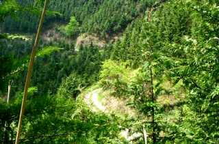 | 2001年5月6日(日) 家から一番近い山〜刈寄山 GWも最終日となり、どこにも行かなかったカミさんのために、家から一番近いと思 われる刈寄山に行くことにした。 朝8時過ぎ、家を出発。カーナビに任せて今熊神社を目指す。滝山街道から五日市街 道へ。山田交差点からトンネルを抜け目指したはずが何やら埃っぽいところへ。採石場 らしい。もう一度ナビを確認すると、目的地はあっているが、ナビの指し示していると ころは一本はずれた美山町の奥だった。 慌てて戻り、小峰峠の登り口の脇を左に入る。いきなり立派な道路があり何かと思 ったら、新しく小峰トンネルができるようだ。峠を越えることなく五日市に抜けられる ようになるのは地元の人には喜ばしいことだろう。 ![]() 今熊神社 こんな立派な神社があったなんて ![]() 見晴台から五日市をのぞむ をとめる。駐車場から奥に林道が続いているのでここだと思い登っていく。気持ちよく 歩いていくと行き止まりだった。緑の小道という感じだったので、散歩するにはよいか も。 気を取り直して、今度は神社の右手脇から登る。本殿はここを登りきったところに あり、いかにも参道といった感じの急な登りが続く。大岩につけられた階段や木の根を 越えて、30分ほどでベンチとトイレのある見晴し台に着く。五日市の街がよく見える。 ここからは、なだらかなアップダウンを期待しよう。見晴し台からほどなく今熊神社の 本殿に着く。コンクリート作りで風情はない。しかもあまり手入れされていないのかや や荒れた感じがする。併せて奉られているさまざまな神様は昔ながらのようだ。 ![]() 今熊神社そばの道標 金剛の滝なるものがあるらしい る。新緑がすがすがしい。気持ちよく歩いていると、重機の音が聞こえる。左側の谷に 砕石場が広がっており、山が全面削り取られている。最初に間違って入っていった砕石 場の奥は、こんな風になっているのか。そういえば途中聞こえていた、「ドーン、ドー ン」という音は山を崩す発破の音だったのか。人目につかない山の中では、何が行われ ているかわからない。 ![]() ほうが楽だが、「巻き道」の案内版が出ているところはそのまま登ったほうが歩きやす い。急な階段の登りだが、後はフラット。巻き道の方は斜面に細い道がついているだけ で結構きつい。 いくつか山を越え、遠く林道らしき道が続く山が見えたらそれが刈寄山だ。急な登 り下りが続く。やっと山頂だ。 ![]() 刈寄山(687m) お昼を済ませて来た道を戻る。途中に見える林道は「盆掘林道」だ。バイクが1台の んびりと登っていく。車でここまで来れば刈寄山まではあっという間だろう。しかし、 それではもったいない。市道山や陣馬に行くなら別だが。 ![]() うだが道がある。入るのもためらわれるような森の先で山が崩されている。 お手軽なようでいて、往復5時間近く歩いた。たまにこんな近くの山を歩いてみる と、東京の自然の置かれた姿がよく見える。 |