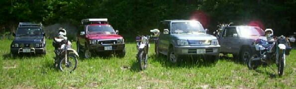 | 6月2日〜3日(土・日) 奥多摩・塩山周辺から茅が岳ふーみんランド へ 一夜明けて、テントの中でもかなり明るくなりだしたころ、のそのそと起きだした。 昨日のお酒がまだ残っているのがわかる。昨夜残しておいた焼きおにぎりをカップに崩 し、永谷園のお茶づけをふりかけお湯を注ぐ。手抜きだがとりあえずお腹に入る。気分 が落ち着いたところでコーヒータイムだ。キャンプの朝は何はなくともコーヒーであ る。気がつくと昨日の焚き火の後もきれいに片付けられ、ただキャンプチェアだけが車 座になっている。この手間が面倒で、自分では焚き火をしないのだが。(ふみ坊さん見 事です) 若干まだ酔いのさめていない人がいるが(自分の事か?)、とりあえず記念撮影を 済ませる。とりあえず今日の予定はみんなバラバラであり、自分でもこれというのはな いのだが、甘利山方面はまだ行ったことがなかったので、トプコンさん、一つ目さん、 ふみ坊さんとともに小武川林道に向かうことにした。 ![]() う。先日来たときはまだ枯草が残っていたが、今日は青々としていてまるで牧場のよう である。ヒルクライムはやはりかなりの斜度で、ラインを間違え、登りそこなうと横倒 しになりそうだ。そんな中、笑遊さんが果敢にも挑戦。(ここはジムニーしかないでし ょ!)しかし、もう一段急になるところであえなくストップ。余裕の記念撮影を済ま せ、お開きとなった。 ![]() 迷路にはまって抜け出せない。前回はバイクだったせいか感じが違うのだ。大岩に交互 にタイヤを乗せるようなモーグルをやっとのことで抜け、韮崎を目指す。 小武川林道入口でトプコンさんのバイクを降ろし、バイク組とは青木鉱泉で落ちあ うことにして、マイペースで進む。昔、南アルプス鳳凰三山に登ったとき、青木鉱泉に 下り、バスで下ったことがあるが、やけに埃っぽい道だったと記憶しているが、思った ほどではない。久々の青木鉱泉は、あまり変わっておらず、キャンプサイトが広くなっ た程度か。ぶらぶらと散策し、木陰で横になりバイク組を待つ。程なく、バリンバリン と独特の音とともに皆さん現れ、一緒にそばなど食す。食後は、バイク組は小字沢林道 へ、私は御庵沢小武川林道へということでここでお別れだ。 御庵沢小武川林道は、甘利山の南の麓まで通じていると、トプコンさんに教えても らったので、そのまま帰ることにしたが、なかなか眺めもよく、フラットな林道であ る。やはりバイクで走ってみたい。ハンターカブ君もがんばって走っていた。 芦安村に通じる県道20号に下りたころには、寝不足や日差しが強かったこともあ ってかなり疲れた。高速に乗ってもすぐ眠くなるので、SAで仮眠して帰宅した。 |