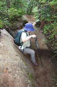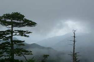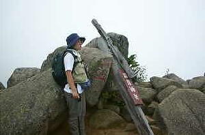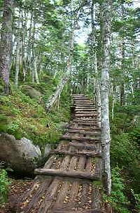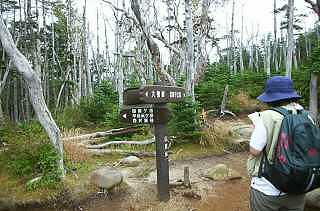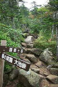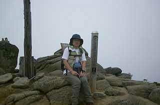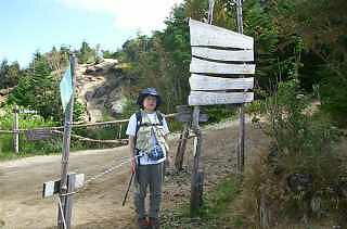 | 2001年9月16日 川上牧丘林道と国師岳 今回はカミさんのリクエストで「山と温泉」である。 どこにしようかと思ったが、手軽に行ける2000メートル級であることと、8月から川 上牧丘林道が通行可能になったとのことで、国師岳にした。(川上牧丘林道は現在、平 日は時間規制で通行止めである。詳しくは牧丘町のHPで) 朝6時に自宅を出発し、中央高速をなぜか一宮ICで降り、峰越林道である川上牧丘 林道の最高地点「大弛峠」に着いたのは8時半だった。林道の牧丘側ははそのほとんど が舗装され、残るダートは工事中の約2キロである。未舗装部分は路面がうねり、所々 岩盤が顔を出す荒々しさを残しており、6・7年前にここをはじめて4輪で通行したと きの興奮を思い出させてくれた。 大弛峠は相変わらずの駐車ラッシュであり、私の車もその列に加えさせてもらった。 身支度を済ませ、8時50分出発。 ![]() 登山口にて 雲が出ているがおおむね晴れている 構きつい登りがしばらく続く。 ![]() ![]() 登りだして40分、景色が開けて道も平らになったと思ったら、前国師岳でした。下 ばかり見ていたら、いつのまにかガスっています。ガイドブックでは、富士山を眺めな がら歩けると書いてあったのに(泣)。 ![]() 富士山が見えなくてすねる 長野側にわずかに光が 前国師を下り、林道のミニチュアのような道を行くと、ほどなく三つなぎ平に出る。 右へ行くと北奥千丈岳、左へ行くと国師岳。 ![]() 地図みなくったて大丈夫だってば ートル。眺望は抜群、のはずだがここでも何も見えない。しょうがないので次へ行く。 ![]() 心なしか気落ちした模様 じゃないか?登りだしてまだ1時間しかたっていない。2592メートルの百名山も有 り難味がないね。お腹も空いていないので、ここでコーヒーブレイク。 ![]() とうとう被写体はカップになってしまった のだろうか?そういえば下りも快調で、前国師岳を過ぎたことにも気づかなかった。 「夢の庭園」は林間を少し行った所で岩のテラスのような場所に出る。ここからの眺め も良い。石楠花がたくさん生えているので、初夏の時期はきれいだろう。このまま下り きってしまってもしょうがないので、ここでお昼にする。雲が少し切れて、車で登って 来た林道が良く見える。 ![]() これじゃ富士山は見えないね〜 ョートコースだった。帰りの林道のダートですれ違った家族連れセダンに「大弛峠まで 後どれくらいですか」と聞かれた。多くの車はこの短いダートに四苦八苦し、冷や汗を 流しているのだろう。山梨側の舗装完了が先か、冬季閉鎖が先か。 このまま帰ってしまうのはもったいないので、いつもゲートの閉まっている鶏冠山 林道を歩いてみることにした。元はコンクリート舗装されていたのだろうが、ほとんど オフロード化している。やたら笹薮が目につく。途中「黒金山徳和林道」の分岐があっ たのでそちらへ行く。しばらく行くとはるか眼下に川が見える。対岸にも林道が見えか なり高いところまで続いているようだ。もう少し歩き、川にかかる橋で対岸とつながっ ていることを確認して引き返すことにした。すると、地面にキラキラと光るものが!水 晶か!と思ったが良く見ると石英の塊のようだ。林道がどこまで続いているのかはわか らなかったが、新しく開設中であれば、水晶のひとつも見つかるかもしれない。 ![]() どこかに繋がっているといいんだけどな〜 し、高速渋滞もイヤだったので、柳沢峠を越え、ていつもの丹波山温泉「のめこい湯」 に寄った。汗を流し、さっぱりとすると、満足感がこみ上げてくる。終わり良ければ全 て良し。 |