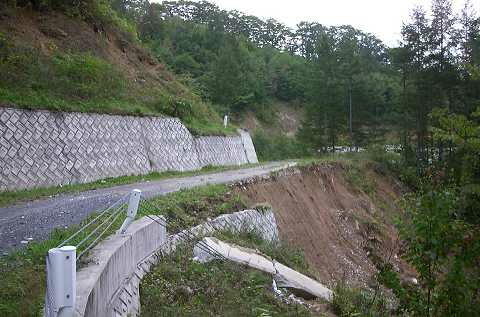 | 2001年9月29日(土) 入笠山日帰りツーリング 今月の「ツーリングGO!GO!」を見ていたら「入笠山」近辺の林道が紹介されてい た。いずれは行ってみようと思っていたので先週に引き続き今週もお出かけだ! 朝5時起きして6時に出発。R20をひた走る。道の駅で休憩を入れながら9時過ぎに は本日の一本目、「金沢林道」入り口だ。JRあおやぎ駅入口の案内が見えたらすぐ左 に折れて登っていく。入口はやや薄暗いが登っていくうちに展望が開けてくる。砂利ダ ートの向こうに雲を抱いた八ヶ岳が見える。 ![]() 道幅はたっぷり、景色もたっぷり! 黒河内林道」。どっちに行ってもぐるっと周回してこれるが、右に行くことにした。 「町道高嶺線」は尾根沿いに走る道なので景色がよい。路面は基本的にフラットで、 赤土の走りやすい道だが、進むにつれて、轍の深いところや大きな水溜りが現れ、路面 全体がうねっているところも現れた。(バイクは楽しいけど)普通車はどうするのだろ う。 ![]() 遠く南アルプス連峰?に連なる山々 走っていると気持ちが良い。ん?!背に?しまった北上してしまった。UターンしてR 256を目指す。白山トンネルを抜ける頃そろそろお昼だ。お腹がすいた。「道の駅南 アルプス村」で何か食べられるかと思ったら、ここはパン屋さんがあるのみ。クロワッ サンでお昼という気分ではないので、ここはパス。 美和湖も終わり、「戸台口」のバス停で右折。美和湖もそうだったがここの川沿い も大掛かりな工事をやっている。だから長谷村って所は色気がなんとなく足りない気が する。南アルプス林道のバス停を過ぎると道も細くなる。北沢峠方向のゲートを過ぎて しばらくでダートが始まる。 「黒河内林道」は固くしまった砂利混じりダートである。渓流沿いの道を快調に登 って行くと第1ゲートである。一応このあたりも牧場らしく鉄線に囲まれている。草地 が多いので景色がなんとなくやさしい。登り切ると第2ゲートがある。ここでハプニン グが!ゲートの蝶番が壊れていて、かんぬきをはずしたとたんにゲートが足の上に落ち てきた。幸いシューズのプロテクターにあたったので骨折等はなかったようだが、痛い 思いをしてしまった。 ここからは入笠山林道。周回できるようになっているが、とりあえず右手へ。のん びりと走っていると牛が草を食んでいる姿が目に入った。 ![]() のんびりとしたもんです 山荘の山菜そばで昼食とする。ここから山頂までは40分ほどらしい。今度来たら登っ てみよう。 ここからは富士見に向かって下る。途中右折して丸金林道へ。しかし八ヶ岳の眺め はいいもののいつまでたってもダートが現れない。とうとう大河原湿原というところへ でてしまった。ここで右折すると「釡無林道」になるらしいが「熊出没注意」の看板 が!どこへ抜けるかもわからないのでここはパス。左はこのまま富士見に下りるよう だ。どうやら最初の右折が早すぎたようだ。引き返すのも面倒なのでこのまま下って帰 ることにした。また来年来よう! ![]() 親子熊が出るらしい 帰りはいつものようにR20を避け柳沢峠へ。時刻は4時過ぎ。着く頃にはどうせ暗 くなっているのでチョット寄り道。まずは「大ダル林道」へ。入口のヌタヌタが埋めら れて普通の道になってました。途中の広場の先でまたもや通行止め。脇をすり抜け入っ てみると、前回崩れたところの少し先で路肩が崩壊してました。 次は泉水中段線へ。三本榎の峠までは問題なく通行できるが、ここでウマが置いて あって通行止め。ここもお邪魔させてもらって入る。新しく開設した牛首谷橋の手前 で、路肩決壊で工事中でした。これだけなら問題なく行けるだろうとなおも進むと、だ んだん石がゴロゴロしてきて悲惨な状態に。川原でロデオをしているみたいに下ってい く。これは絶対に引き返せないな、と思っていると泉水谷林道のゲートがようやく現れ た。ここのゲートはバーが高いので、屈んで潜ることができる。やっと通り抜けほっと した。やはり無理はしないほうが良い。しばらくの間は、工事のダンプが入るのだろ う。 ![]() 大ダル林道、また崩れました。 い。 |