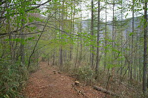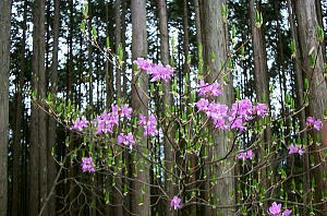 | 2002年4月28日(日) 七ツ石・千本ツツジと峰林道 今年は春から暖かくて、桜もあっという間に行ってしまった。連休を前に下界ではツ ツジが花を咲かせている。以前行った峰林道の入口に、七ツ石への登山コースの案内と 一緒に、千本ツツジの案内があったのを思い出し行ってみることにした。 ![]() 場所は石尾根の七ツ石のそば。奥多摩湖から峰集落に向かい終点に車を置いて歩きま す。入口はただの林道です。少し行くと登山道の標識が。「熊に注意」だそうです。植林 のスギ・ヒノキ林の間を行くこと1時間。やっと上が開けてきます。花粉症の人は歩け ませんね。 ![]() しばらくは登りもきつくなくさわやかな道が続きます。再び植林地帯に入ると急な登 りが続きます。このあたり迷いやすいので注意。上が見えないままひたすら登ると、石 尾根に出ます。ここを登ればツツジがいっぱい!のはずが・・・。まだ硬い蕾のままで した。 ![]() 残念ながら曇っていますが、広い防火帯と絶景が広がっています。ここで昼食休憩。 登り約3時間でしょうか。 ![]() 帰りは途中からエスケープ。赤指山経由で峰林道へ。笹薮の中を細い道が続いていま す。管理道のようですが道はしっかりしています。途中念願のツツジを見つけました。 ![]() 左手に林道が見えたので降りてみます。やっぱり峰林道でした。早春の息吹が感じら れる歩いても楽しいさわやか林道です。途中スミレがたくさん咲いていました。乗用車 2台とバイク2台とすれ違ったので、入り口のチェーンはどうしたのかと思ったら外れ ていました。今度は峰林道から登ってみたいですね。 |