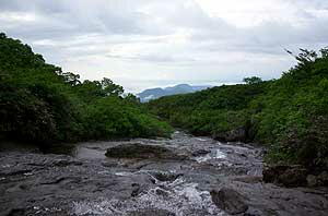 18日の夜に東京を出発し、2泊2日の強行スケジュールで、宮城県側栗駒山にカミさん と行ってきた。 夜中に栗駒山レストハウスの駐車場に着いたときは、星は見えないものの雨は降って いなかった。しかし、浅い眠りから目覚めるころには、高所ということもあり、風雨と もに強くなっていた。山を歩くには快適とはいいがたいので、近くの世界谷地湿原へ行 く。さすがに朝6時の湿原には誰もおらず、小ぢんまりした湿原を二人占めした気分 だ。その後鳴子方面に移動し、温湯(ぬるゆ)温泉の佐藤旅館で朝風呂をつかい、鳴子で こけし博物館、鬼首の間欠泉などを見学した後、予約しておいた民宿へ。 ペンションと呼んだほうがふさわしいくらいだが、部屋は広々した和室。手打ちそば や、頂き物だというお酒までご馳走になって6300円は安い。 翌日は、ニュースでは関東は梅雨明け間近とのこと。やや雲が残っているものの栗駒 登山に行く。レストハウスに車を置き、東栗駒コースへ。50分ほど狭い溝の中をモグラ のような気分で登るといきなり展望が開ける。その後、エーッ、ここ登るの?というか んじの沢を這い登ると東栗駒山がすぐ近くに見える。しかし、ここからは樹木がほとん どなく、石ころ混じりの草原を強風が吹き荒れていた。時折風に乗って霧が飛んでく る。顔に当たる雨粒が痛い。何とか東栗駒山頂での記念撮影を終え、先を目指す。ここ から先は強風と霧のためほとんど記憶なし。木道の階段に出れば山頂はすぐ。 ![]() 山頂も霧に覆われ、下界はまったく見えない。早々に休憩を済ませ下山することに。 下りは中央コース。整備されすぎたくらいの道を下る。霧が切れたあたりに雪渓が見え る。日も差してきてまずまずの気分。途中からは道の中央がコンクリートで固められて おり、両側は草が茂って景色も見えないので忍耐を強いられる。下山する頃には夏空が 広がっていた。 ![]() 帰る前に「駒の湯」に立ち寄った。硫黄の匂いのする白濁した湯。ぬるめで最高にい い湯だ。家に着いてもまだ匂いが取れなかった。 |