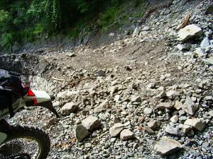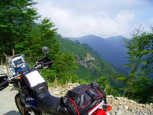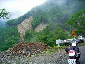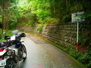 3月に静岡県の中川根町から春埜町・龍山村とツーリングをしたが、そのとき回りき れなかった南赤石林道周辺の林道に、日帰りで行ってきた。健さんのマップを参考に前 回のリベンジだ! 午前1時過ぎに自宅を出発。7時30分には中川根町に到着。このエリアは雨が多いのか しょっちゅう降られている様な気がする。榛原川を渡るとすぐ右手に林道が分岐してい る。【林道藤川線】だ。左岸を遡上する。フラットで道幅も広い。途中右岸に渡った後 しばらくすると川を離れだんだんと高度を上げていく。藤川線は最上部がまだ工事中で 通り抜け出来ず。でもかなり上まで来ていて最後は荒々しい感じに圧倒される。 ![]() 【林道藤川線】入口 【林道藤川線】山は険しくなるが路面はフラット 藤川へ戻って、【林道大札線】入口を探す。かなりわかりにくいが、「大札山登山 口」の案内が目印。コンクリート舗装の道を登っていくと林道標識がある。最初はカー ブもあるが後半は登りの一本道になる。4キロほどで【林道藤川線】との変則T字路に 出る。右に行くと先ほどの工事中のほうだがガスがひどい。底の見えない深い谷で、路 面は工事と落石のせいで大きくうねっている。程なく工事現場に出る。道路を横断する 排水溝を作っており、これ以上は無理だ。T字路まで戻り【南赤石林道】に抜ける。前 回来たときの落石箇所はきれいに修復されていた。 ![]() 【林道大札線】この看板も読めない 【林道藤川線】ガスの中の工事現場 【南赤石林道】は相変わらずフラット。雨なので交通量もない。前回通行止めの車止 めはなく山犬段まで往復できた。が、工事をしている箇所は石がごろごろ。平日はだめ かも知れない。山犬段のゲートは脇を抜けられなくもなさそうだったが、別の機会に別 の方法で訪れることにしよう。 ![]() 【南赤石林道】山犬段のゲート 脇から通れそう? 【林道水川線】入口 看板が読めない R362まで戻って水川へ。ここも橋の袂に【林道水川線】の標識がある。薄暗いダ ートを川沿いに登っていくが、重機がとうせんぼしていたので、2キロで引き返す。 次に【林道松尾線】に向かうため、長尾川手前を中川根町役場へ右折する。ちょうど 食堂「僕の家」があったので昼食にする。女将さんが一人でやっているようだが、壁に は山男らしき男性の写真があちこちに?400円ラーメンと200円餃子を注文する。「野菜 はどう?」と聞かれ、50円増しで追加した。思ったとおり野菜の量が半端でない。目玉 焼きまで入っている。餃子は出来合いのものを焼いたようだが、安いほうがいい。会計 を済ませるときに「東京からですか?」「この間も山で落ちた人がいるから気をつけ て」と声をかけられた。いい人だ。 ![]() 【林道松尾線】土砂崩れ 【林道松尾線】川上嶺線との分岐点 長尾川を遡り橋を渡ったところで、右手にダートの分岐がある。地図では川に沿って 長めのダートがあるようだが、途中で道に大穴が開いていて通行不能だった。分岐を左 に折れコンクリート舗装の急坂を登ると松尾の集落だが、途中左に折れるダートと周回 になっており、さらに【林道松尾線】の分岐もあるのだが、土砂崩れのため工事中通行 止めだった。 国道まで戻り、八代郷の集落から【林道柿風呂線】に入る。「ビンカ峠方面」が目 印。上り詰めたT字路が先ほどの【林道松尾線】だが、反対側も土砂崩れで埋まってい た。T字路を左折するとすぐ【林道川上嶺線】に出る。程なく「ビンカ峠のビンカ地 蔵」が現れる。脇に広場があるが、土砂捨て場だったらしく硬すぎてキャンプには適さ ない。眺めは良い。途中モーグルにてこずるが、なんとか【林道奥山線】まで走り抜け た。大札山駐車場が見えたところでUターン。 ![]() 【林道奥山線】フラットなところはいいんだけど 【杉川林道】入口 ![]() 【杉川林道】大分高度が上がってきました 険しい道が続く (右は拡大) R362に下ると雨はいつの間にか止んでいた。麦島から杉川沿いの【杉川林道】へ 入る。入ってしばらくするとゲートがあるが、バイクなら大丈夫。渓流沿いの爽やか林 道から次々と姿を変え、最後は荒々しい山岳林道へ。落石で2回押しが入ったが、無事 20キロを走り【南赤石林道】に抜けた。大満足。ただ800メートルくらいから雲がか かっていて眺めがなかったのが残念。 ![]() 【杉川林道】最初のガレを越えたところ 【杉川林道】終点 総走行距離591キロ。ダート走行は合計60キロ以上か?静岡詣でもあと僅か。 |